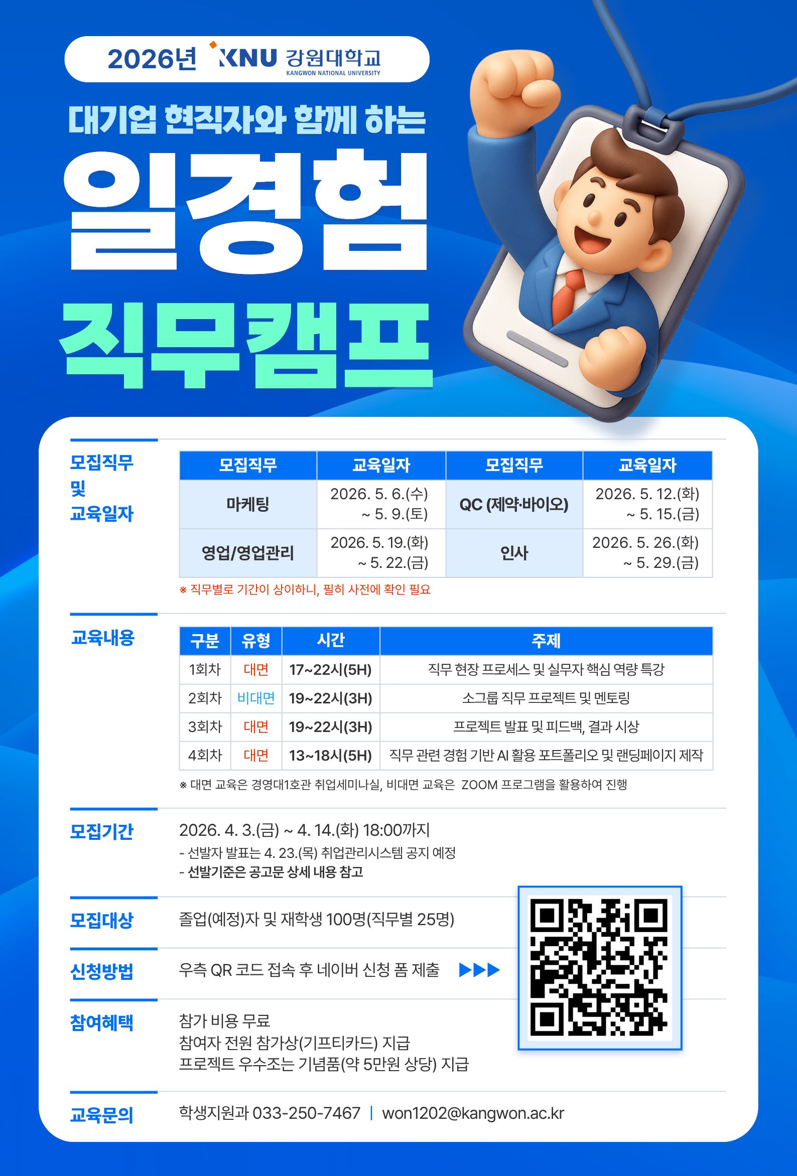 [공지] 「2026-1학기 일경험 직무 캠프」 신청 안내